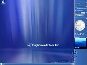 Build 5212.1915 (26 июля 2005) — включает в себя Flip 3D, и, в частности, он снова ввел боковую панель, но теперь он работает в своем собственном процессе, а не explorer.exe (что вызвало утечки памяти в прежнем проекте Longhorn).