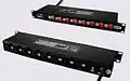 коммутирующая панель 19" высотой 1U из 8 C13 розеток, 8 выключателей и одного предохранителя для использования в телекоммуникационной стойке.