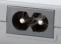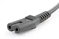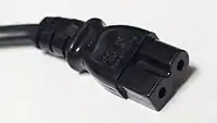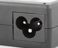 Трёхпроводные, поляризованные, на 2,5 А. За характерный контур иногда в обиходе называются «Микки Маус» или «лист клевера» (англ. cloverleaf). Такой разъём можно увидеть на блоках питания портативных компьютеров, проекторов, видеомониторов.