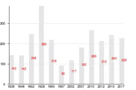 | 1838 | 1848 | 1862[23] | 1997 | 2007[24] | 2010[25] | 2012[26] |