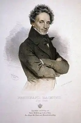 ![]() Фердинанд Раймунд в 1835 г. (литография Й. Крихубера) | |