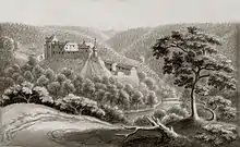 Замок на фоне окружающих его лесов