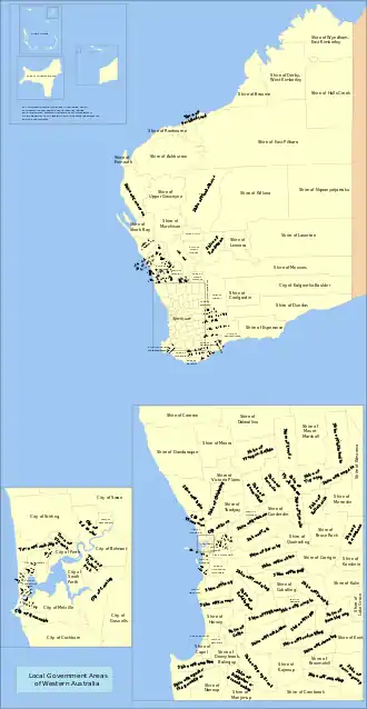 Территория австралийского штата Западная Австралия разделена на 144 района местного самоуправления (включая территории острова Рождества и Кокосовых островов). Статус районов и полномочия их органов регулируются Законом о местном самоуправлении, принятом в 1995 году.