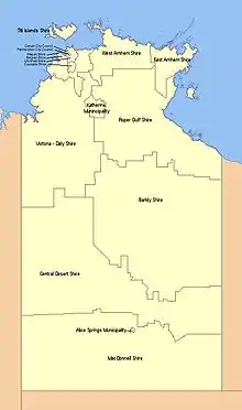 Карта районов местного самоуправления Северной территории.
