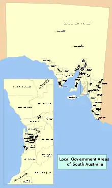 Территория австралийского штата Южная Австралия разделена 69 районов местного самоуправления. Выделяются несколько типов таких районов: