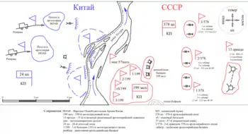- Яременко В. А., Почтарев А. Н., Усиков А. В. Глава 2. «Военно-политическое и военно-стратегическое содержание локальных войн и вооруженных конфликтов». «Локальные войны с участием советских и российских войск». Глава «На советско-китайской границе» // «Россия (СССР) в войнах второй половины XX века» / под ред. Золотарева В. А.. — М.: Кучково Поле, 2000. — С. 126—131. — 576 с. — 3000 экз. — ISBN 5-86090-065-1.