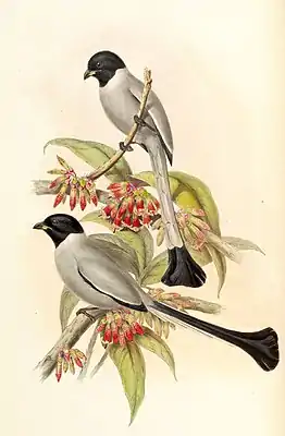 C. cucullata по телосложению схожа со вторым видом того же рода — Crypsirina temia, но достаточно сильно отличается расцветкой (преимущественно серая с выделяющейся чёрной головой) и специфической формой хвостовых перьев[2].