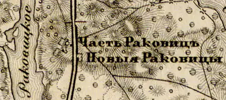 Деревня Раковичи на карте 1863 г.