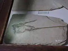 Слепок безголового образца R. muensteri, изначально соотнесённого с R. longicaudus, Оксфордский музей естественной истории. Голова была реконструирована для слепка