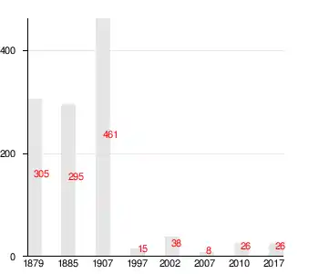 Число жителей по семейным спискам 1879 г.: 147 м. п., 158 ж. п.; по приходским сведениям 1879 г.: 150 м. п., 154 ж. п.;