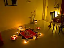 Ранголи, или альпона (рисунок-молитва) — нанесение орнамента на внешние стены дома — особенно вокруг входной двери — и на тщательно расчищенную и утрамбованную площадку перед входом в дом. У разных народов Индии типы этих рисунков различны, причем многие уходят корнями в глубочайшую древность, в те исторические эпохи, когда им приписывали магическое значение и наносили на земле возле алтарей и мест жертвоприношений. Можно проследить прямую связь некоторых из них с узорами на печатях и сосудах, найденных при раскопках в долине Инда.
