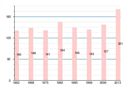 | 1962 | 1968 | 1975 | 1982 | 1990 | 1999 | 2006 | 2008 | 2011 | 2012 | 2013 |