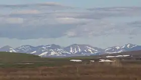 Сложен андезитами и глинистыми сланцами. Нижняя часть склонов и долины покрыты кустарниковыми зарослями ольхи и кедрового стланика, выше располагаются лишайниковые и каменистые тундры. Сохранились одиночные особи чукотского снежного барана.