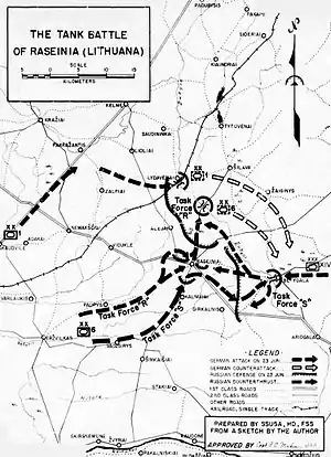 3-му мехкорпусу было приказано за ночь выйти в район Расейняй и на рассвете также наступать на Скаудвиле.