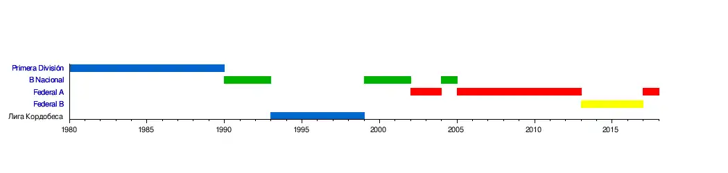 Участие клуба в дивизионах чемпионата Аргентины (с 1980 года)