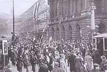 Положение Венгрии ухудшилось и из-за вступления румынских войск в Трансильванию и её аннексии Румынией. В стране активизировали свою деятельность социал-демократы и коммунисты. 20 февраля 1919 года в Будапеште произошёл погром газеты социал-демократов «Вёрёш Уйшаг» коммунистами[3]. Погибло 7 человек, включая полицейских, вмешавшихся в столкновения. Это послужило поводом для череды массовых арестов членов Коммунистической партии Венгрии. Несмотря на это, симпатии населения к коммунистам росли, и 1 марта под давлением общественности венгерское правительство вынуждено было легализовать компартию. 11 марта в Сегеде произошла антиправительственная демонстрация рабочих и военных. 18 марта во время демонстрации на Чепельском заводе прозвучали призывы к установлению в стране Советской власти. 19 марта представитель Антанты в Будапеште вручил главе правительства Михаю Каройи карту Венгрии с новыми границами страны и попросил разрешения ввести в Венгрию войска Антанты для «предотвращения массовых беспорядков».