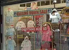 8) Ликвидация товара. В демократических странах есть понятие «выйти из бизнеса». Распродажа-ликвидация в таких случаях нужна, чтобы освободить помещение, закрыть документы. Там, в подобных отделах можно купить товар за бесценок. В России же распродажа-ликвидация вполне может быть очередным обманом, чтобы заманить доверчивого потребителя. Нередко после такой "ликвидации", торговая точка продолжает работу, что зачастую объясняется появлением нового инвестора, который и спас магазин от разорения[4].