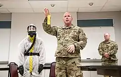 К 22 марта Джастис призвал жителей Западной Виргинии оставаться дома как можно дольше.[20] К Джастису присоединился доктор Клэй Марш, вице-президент Университета Западной Виргинии и исполнительный декан по медицинским наукам. Марш сказал, что на Нью-Йорк обрушилась "волна цунами" случаев коронавируса, и если Западная Виргиния сможет оставаться дома как можно дольше в ближайшие несколько недель, волна цунами может стать более похожей на бурный поток для Западной Виргинии.[20]