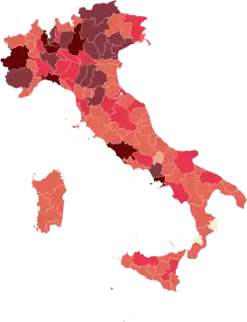 ![]() Подтверждённые случаи заражения по провинциям Италии | |