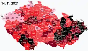 По состоянию на 13:00 13 мая 2021 года на территории Чехии проведено 6 937 202 ПЦР теста и 8 807 452 антигенных теста, подтверждено 1 648 667 случаев заражения коронавирусом[11], 1 586 400 человек выздоровело, 29 787 умерло. Показатель смертности из числа инфицированных составил 1,89 %.