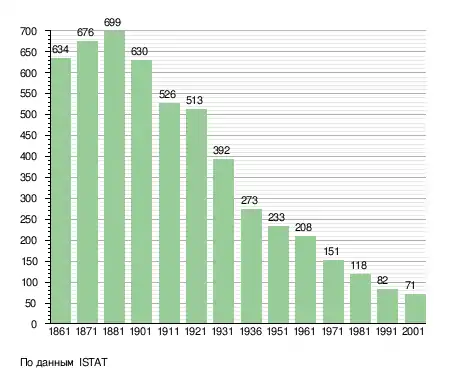 Население составляет 77 человек (2008 г.), плотность населения составляет 2 чел./км². Занимает площадь 44 км². Почтовый индекс — 13020. Телефонный код — 0163.