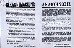 После расстрела оккупационные власти распространили объявление-предупреждение, где среди прочего было написано: «…железнодорожный состав …подвергся атаке коммунистических банд и был сожжён. Немецкие солдаты и греческие граждане были убиты или ранены, раненные немецкие солдаты были убиты или похищены. В качестве возмездия за эти коварные действия, которые с одной стороны наносят урон немецкой армии, а с другой стороны мирным жителям, были приняты и исполнены следующие меры:
