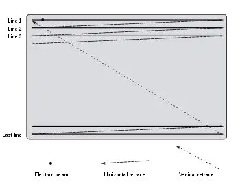 В телевизионном вещании принята прямоугольная линейно-строчная периодическая развертка (слева направо и сверху вниз) и она может быть двух видов: чересстрочной и прогрессивной[1].
