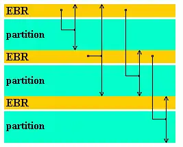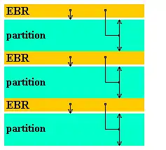Вторая запись в таблице разделов EBR будет содержать нулевые байты, если это последний EBR в расширенном разделе; в противном случае, она указывает на следующий EBR в EBR-цепи.