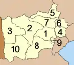 | 5 | Банпонг | 366,6 | 157 689 | 10 | Банкха | 1 026,9 | 22 818 |