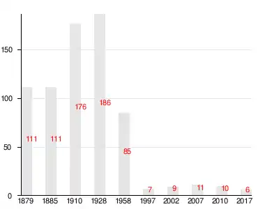 Число жителей по семейным спискам 1879 г.: 54 м. п., 57 ж. п.; по приходским сведениям 1879 г.: 52 м. п., 63 ж. п[4].
