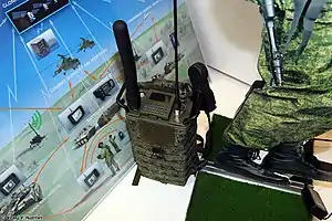 - (с 2017 года) датчики системы опознавания для боевых машин и солдат на принципе «свой-чужой». Отличить «своего» от «чужого» военнослужащий, снабжённый таким датчиком, сможет, глядя на экран специального устройства, внешне похожего на мобильный телефон. Оно отображает на электронной карте местоположение солдата и расположение дружественных сил в данный момент времени[20].