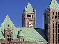 Первоначально здание имело красную черепичную крышу, но она начала протекать и в 1950 году было установлено медное покрытие[2]. Общим весом в 81,6 тонны, оно является крупнейшим в округе. Медь с тех пор приобрела характерный зелёный налёт.