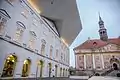 Ратушная площадь, вид на здания Нарвского колледжа и Ратуши (2014)