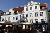 - д. 15 — бывшая ратушная канцелярия (ныне — ресторан «Тройка»[9]). Первое упоминание здания ратушной канцелярии относится к 1378 году. Нынешнее здание построено в 1432-1434 годах, в 1914 году была осуществлена его обширная перестройка. В 1972 году в ходе приспособления здания под конторские помещения киностудии “Eesti Reklaamfilm” цокольный этаж был приведён в порядок и использовался в качестве павильона для съёмок. Памятник культуры с 1997 года[10].