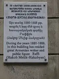 - Церемония открытия мемориальной доски в честь Раффи в Тбилиси