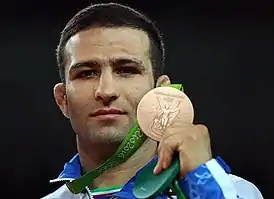 ![]() Хасан Рахими с бронзовой медалью в Рио-де-Жанейро | |
