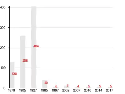 | 1879 | 1905 | 1927 | 1965 | 1997 | 2007[12] | 2010[13] |