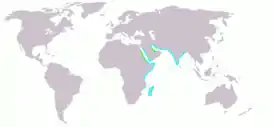Область гнездования рачьей ржанки на побережье Красного моря и Персидского залива ограничена (1996 г.) девятью колониями[4]: