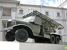 - реактивные системы залпового огня (122 мм снаряды: 9М521, 9М218, 9М22У и др. БМ-21 РСЗО «Град» и др.; 140-мм — ОФ-45, ОФД-45 РСЗО БМ-14 и РПУ-14; 220-мм — 9М27С, 9М27К3 и др. БМ-27 РСЗО Ураган; 300-мм — 9М529, 9М533 и др. БМ-30 РСЗО Смерч)