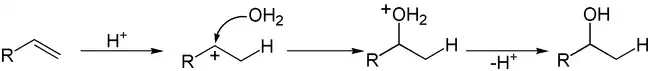 Примером таких реакций служит гидратация алкенов: