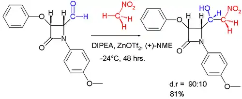 Более сложный пример диастереоселективной реакции Анри показан ниже.[4]