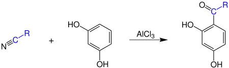 В качестве ацилирующих агентов более активны алифатические нитрилы, однако и ароматические нитрилы вступают в реакцию, если их предварительно смешать с хлоридом цинка и насытить хлороводородом; эта процедура также повышает выходы при использовании алифатических нитрилов[4].