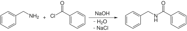 В классическом варианте реакция проводится добавлением хлорангидрида к раствору амина или спирта в водной щелочи, в случае плохо растворимых аминов или спиртов — в двухфазной системе вода-органический растворитель. Поскольку полностью гидролиза хлорангидрида в условиях реакции избежать невозможно и реакционная среда должна оставаться щелочной до конца проведения ацилирования, хлорангидрид и щелочь берут с некоторым избытком (до 25 %).