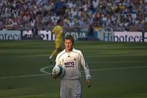 Новым президентом был избран амбициозный Флорентино Перес[7], который решил собрать в «Реале» всех лучших футболистов планеты. Свою деятельность Перес начал с покупки португальца Луиша Фигу у «Барселоны» за рекордные 71 миллион евро[8]. Спустя год в ряды «Реала» влился Зинедин Зидан, за которого заплатили «Ювентусу» ещё больше — 75 миллионов. Ещё через год из «Интера» прибыл Роналдо, летом 2003 года — Бекхэм, в 2004 — Оуэн. Таким образом, в сезоне 2004/05 вместе играли четыре футболиста, удостаивавшиеся «Золотого мяча»: Роналдо (лучший футболист мира 1997 и 2002 годов), Зидан (1998), Фигу (2000), Оуэн (2001). Это собрание звёзд стали называть «Галактикос». За пять с лишним лет правления Переса (он сложил полномочия в феврале 2006 года) «Реал» дважды становился чемпионом Испании и лишь раз выиграл Лигу чемпионов УЕФА (в сезоне 2001/2002).