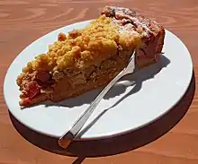 Ревеневый пирог — фруктовый пирог с начинкой из черешков ревеня. Ревеневые пироги готовят как на песочном, так и на дрожжевом тесте и выпекают как листовыми, так и в круглых формах для выпечки. С ревенем готовят тарты, а также торты — заливные с пудингом, творогом или на манной крупе или желейные. Ревеневые пироги часто посыпают кондитерской крошкой или взбитыми белками[1].
