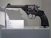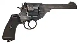 Стандартным личным оружием офицеров был револьвер Webley Mk V, принятый на вооружение 9 декабря 1913 года[20], хотя в 1914 году[21] встречались намного чаще образцы 9,65-мм Mk IV[1], поскольку заказ на 20 тысяч револьверов Mk V так и не был выполнен на момент начала войны[20]. 24 мая 1915 года стандартным оружием армии Британской империи и её колоний стал револьвер Mk VI[20], который был оружием офицеров, лётчиков, моряков, экипажей бронетехники, водителей, пулемётчиков и сапёров. Револьвер Mk VI оказался очень надёжным оружием, устойчивым к загрязнению и условиям окопной войны. Специально для него изготавливался штык на основе штыка винтовки Гра[22], зарядные устройства (устройства систем Придо и Уотсона)[23][24][25] и специальный приклад, который превращал револьвер в карабин[26].