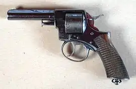 Карманный револьвер «Бульдог» (англ. Bull Dog) был представлен в 1872 году. Это было оружие со стволом длиной 64 мм с пятизарядным барабаном под патроны .44 Short Rimfire, .442 Webley или .450 Adams. Позднее производились версии и под патроны .320 и .380, но без обозначения «British Bulldog». Эти револьверы можно было спрятать в кармане пальто, и многие из них дожили до современности, хотя и не использовались практически в боях[58]. В XIX веке револьвер подобного типа производился в Испании, Франции, США и Бельгии[59]. До Второй мировой войны они были достаточно популярными, но в настоящее время являются исключительно экспонатами различных частных коллекций, поскольку патроны для них не производятся. 2 июля 1881 года именно из револьвера «Бульдог» под патрон 44-го калибра Шарлем Гито был убит американский президент Джеймс Абрам Гарфилд[60].
