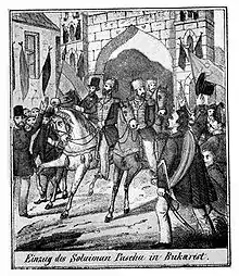 ![]() Жители Бухареста с триколором во время событий 1848 года | |
