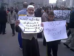 Револю́ция в Еги́пте (араб. ثورة 25 يناير) — серия уличных демонстраций и протестов в Каире, Александрии и некоторых других городах (в том числе в столицах иностранных государств около посольств Египта) с 25 января по 11 февраля 2011 года, приведшая к отставке сначала правительства, а затем и президента Хосни Мубарака, находившегося у власти с 1981 года[10]. В результате революции к власти сначала пришло временное военное правительство, а затем на последовавших президентских выборах 2012 года победу одержал кандидат от братьев-мусульман Мохаммед Мурси.