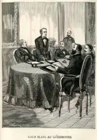Особой популярностью пользовались у рабочих идеи Луи Блана об «организации труда». В одноименной брошюре Луи Блан развивал мысль, что всякий должен иметь «право на труд» и что государство обязано обеспечить гражданам это право, организуя и поддерживая рабочие ассоциации — «национальные мастерские», весь доход от которых (за вычетом необходимого для производства) принадлежал бы работающим в них. 25 февраля большая манифестация рабочих явилась в Ратушу со знаменами, на которых было написано: «Организация труда!» — и потребовала немедленного учреждения министерства прогресса. Из правительства это требование поддержал только Блан. Однако под давлением рабочих Временное правительство приняло свои первые декреты с расплывчато-социалистическими декларациями, обещая «гарантировать рабочему его существование трудом», «обеспечить работу для всех граждан» и признавая за рабочими право и необходимость «ассоциироваться между собой, чтобы пользоваться законными плодами своего труда». Вместо министерства прогресса правительство постановило учредить «правительственную комиссию для трудящихся», которая должна была разрабатывать меры по улучшению положения рабочего класса. Для комиссии отводился Люксембургский дворец, отчего она и получила название «Люксембургской комиссии».